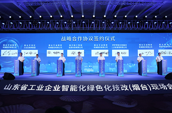 9月23日上午,220余家企业齐聚烟台经济技术开发区,山东省工业企业智能化绿色化技术改造(烟台)现场会召开。大会由山东省工业和信息化厅指导,烟台市工业和信息化局和烟台开发区管理委员会主办,山东省两化融合促进中心、山东省数字经济协会、山东省装备制造业协会、山东电子学会、山东省信息产业协会、山东省循环经济协会、山东省高端化工转型促进会、山东省食品质量促进会、山东省汽车行业协会、山东省机器人协会、山东省铸造行业协会、烟台市智能制造产业招商办公室协办,烟台艾迪精密机械股份有限公司承办。